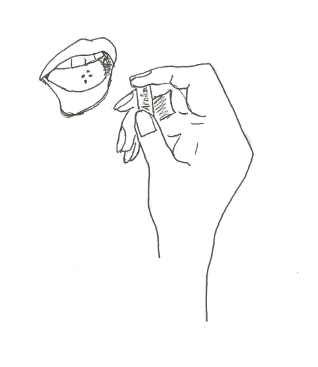 Because our skin may have odors from perfume, soaps or lotions that could antidote the remedy, it’s preferable to simply count the pills out into the cap (4 pills equals 1 dose in my practice) and avoid handling them. Once you’ve counted out the proper amount of pills, toss them directly into the mouth and allow them to dissolve.