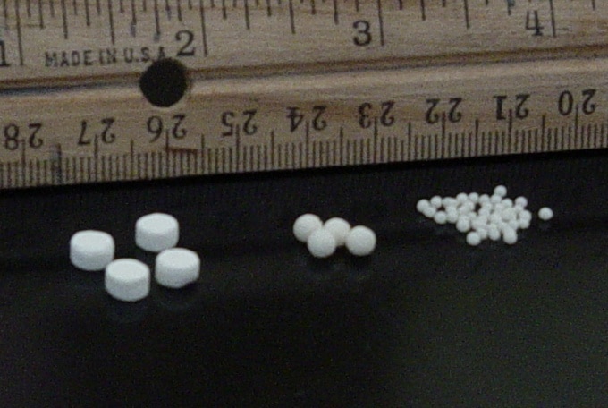 The pills also come in different densities. Lactose (milk sugar) tablets are common, as are sucrose (cane