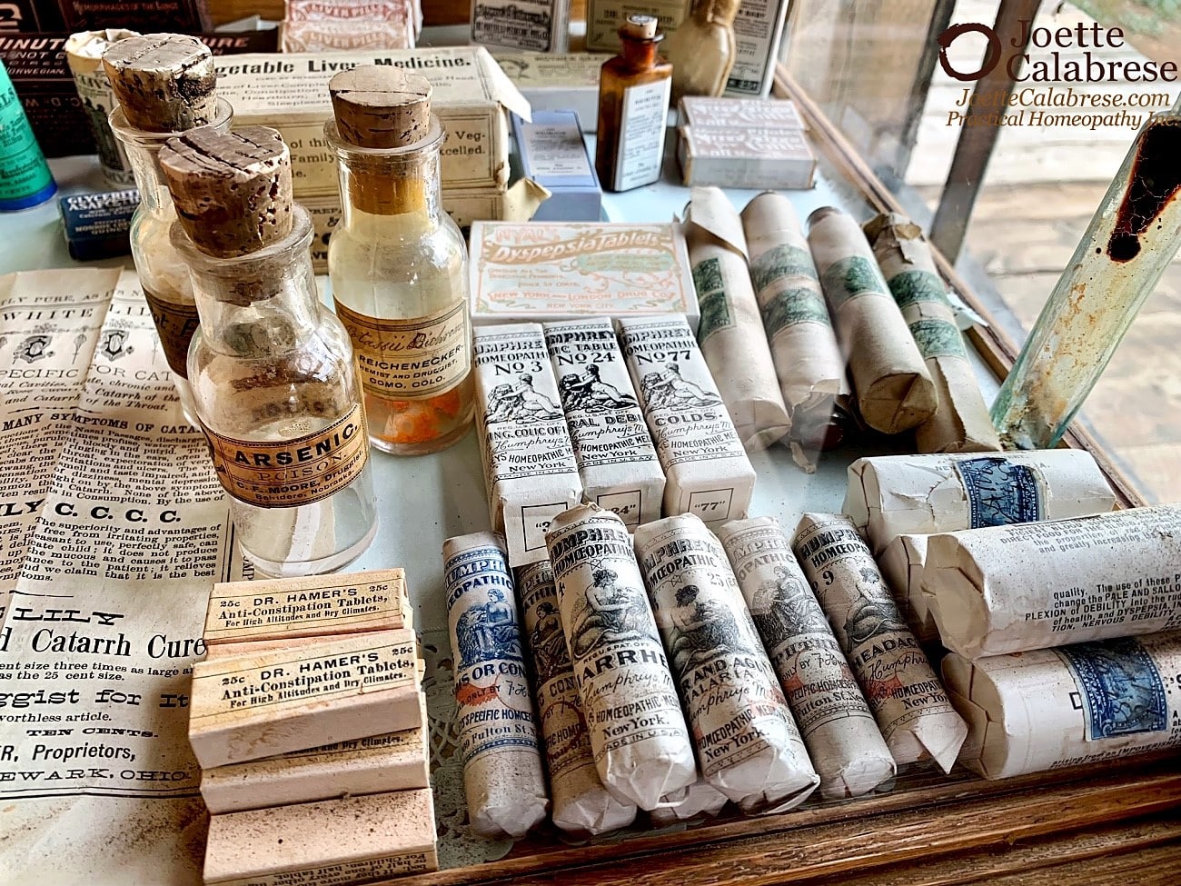 “Attached are photos of old homeopathic remedies I took touring a mining town museum in Fairplay, CO, this past summer. The pictures aren’t great since they were in glass cases but hope you all enjoy too — and note the Arsenic poison bottle that happened to be placed next to some homeopathic medicines! We were told they have one of the largest medicinal collections on display, obviously including allopathic and homeopathic. Enjoy!” — Sarah S.